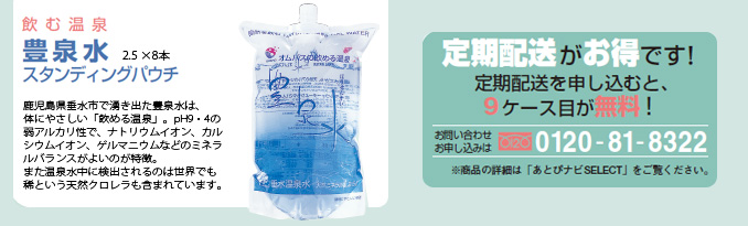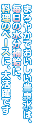 体を冷やさないように常温で飲むことも大 事。海外のミネラルウォーターは硬水が多く 味も個性的なので、冷やして飲むことが多い のですが、豊泉水は味がまろやかで、常温で もおいしく飲めるところがいいですね」
