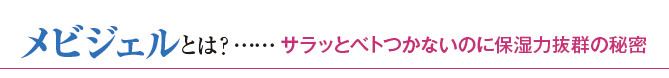 肌の表面に透明な膜を作り、肌のバリア機能を強化してくれるメビジェルは、水分を逃がさずに保湿することに特化した成分。つまり、他のスキンケアアイテムをぬった上からメビジェルをぬることで、保湿力を強力にパワーアップさせることも可能です。