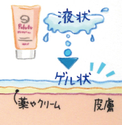 - ぬる前は液状だけど、肌にぬると固まり皮膚をバリア